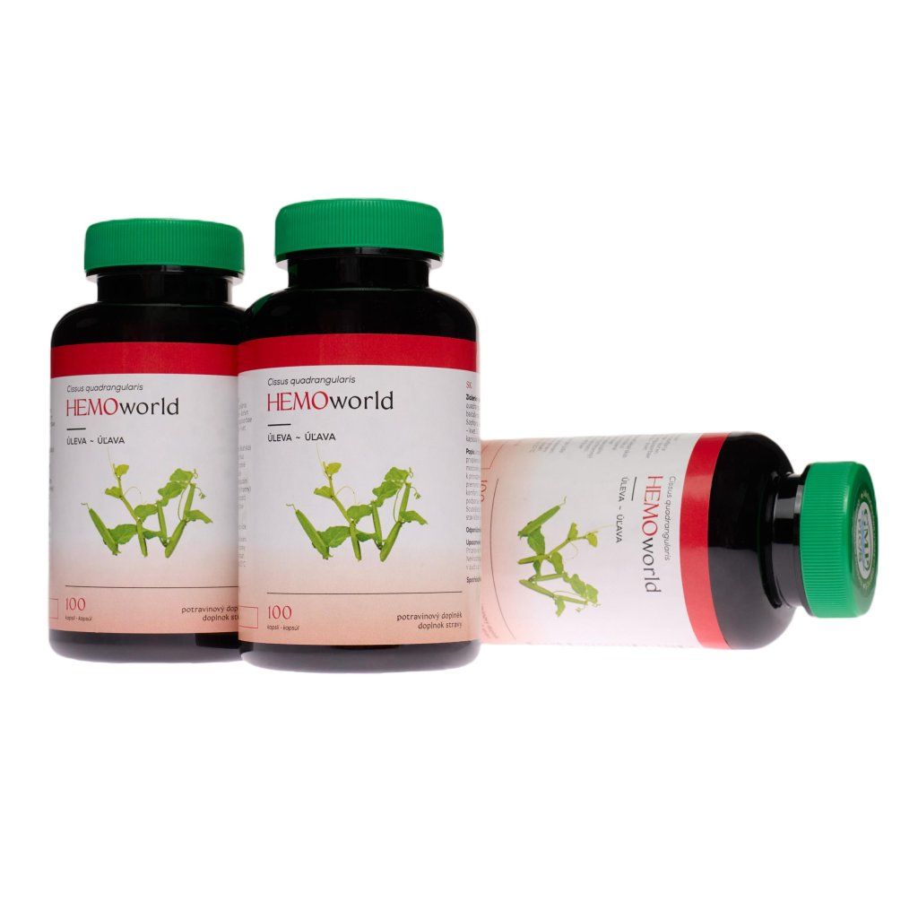 HEMOworld 2 + 1 zdarma - 100 dnů - Žumen čtyřhranný / Reveň lékařská / Šišák bajkalský
