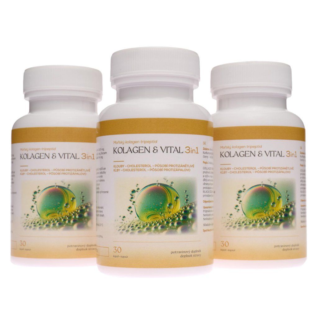 KOLAGEN & VITAL 3in1 2 + 1 zdarma - 90 dnů - Kolagen mořský / Kurkumovník dlouhý / Sezam černý