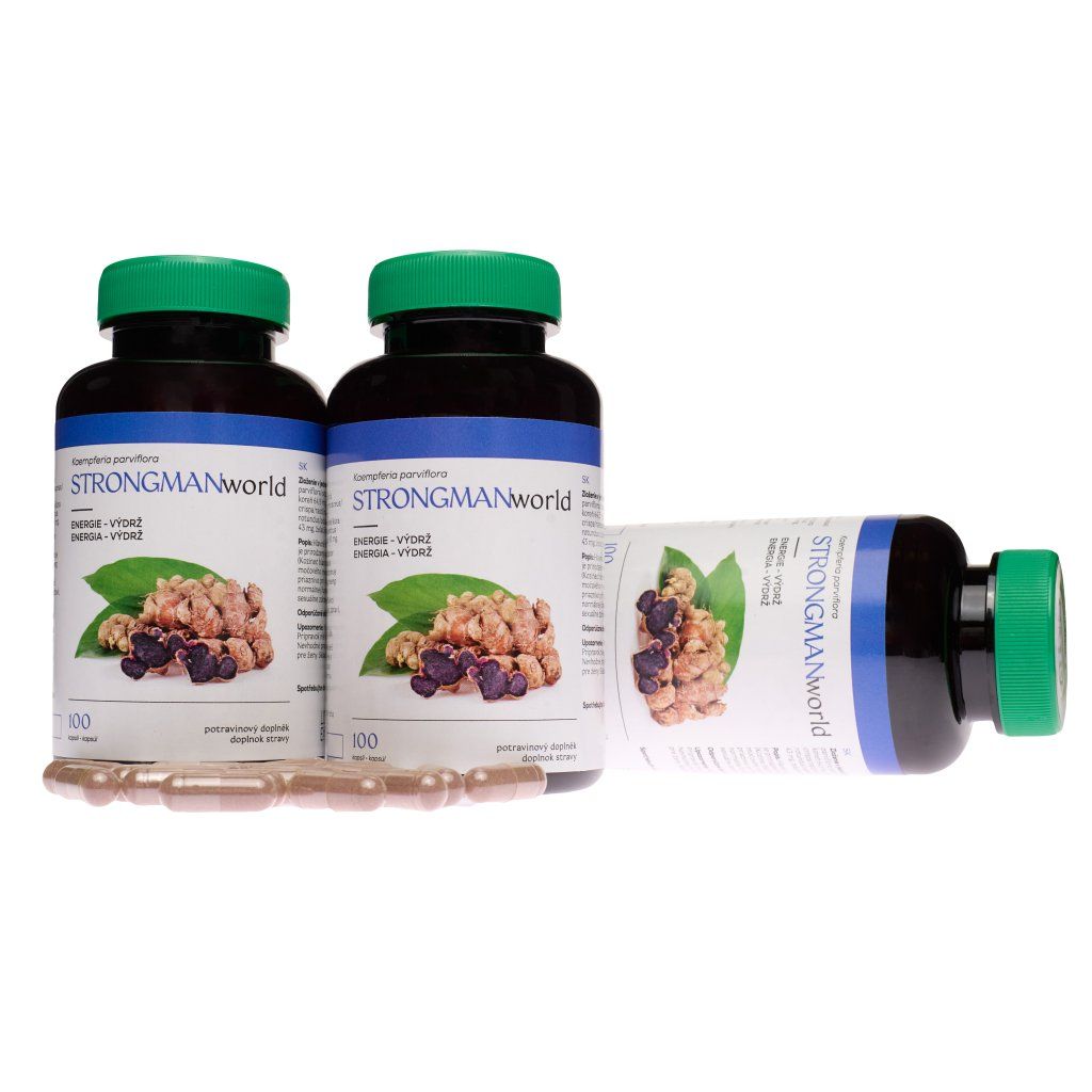 Originál obsahující byliny a plodiny pěstované na plantážích v jižní Asii, v současnosti dostupný pouze u nás! 100% garance kvality. Nejvýše zastoupenými složkami STRONG(WO)MANworld jsou Kaempferia Parviflora, Astragalus membranaceus a Panax ginseng. Hlavní složka Kaempferia Parviflora (Zázvor černý) je přirozeným antioxidantem. Astragalus membranaceus (Kozinec blanitý) výrazně podporuje imunitní systém, normální činnost cévní soustavy, ledvin a močového měchýře, přispívá ke zvýšení pohyblivosti kloubů a pomáhá normalizovat hladinu cukru v krvi. Panax ginseng (Ženšen pravý) působí příznivě při fyzickém výkonu. Přispívá ke snížení únavy, normální funkci kardiovaskulárního systému a udržuje sexuální zdraví, vitalitu a paměť.